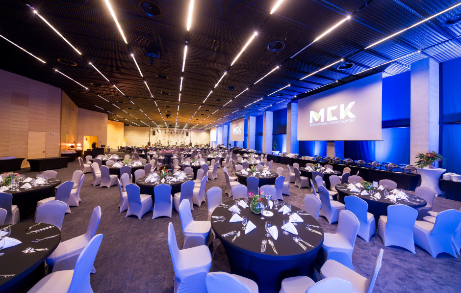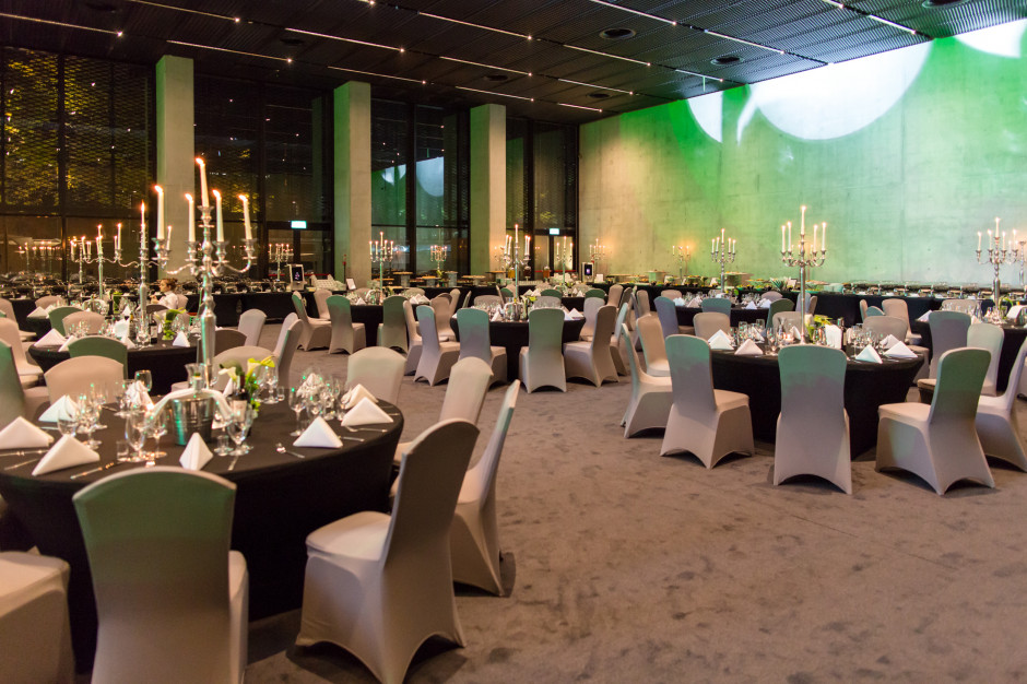 Ballroom AB can also be connected with Ballroom C using the sliding wall. This expands the area of the room to 1188 m², which enables many other arrangement options. The foyer located at the entrance to the banquet hall is an excellent place for refreshments, and the accompanying bathroom facilities allow for complete independence of banquet hall events.