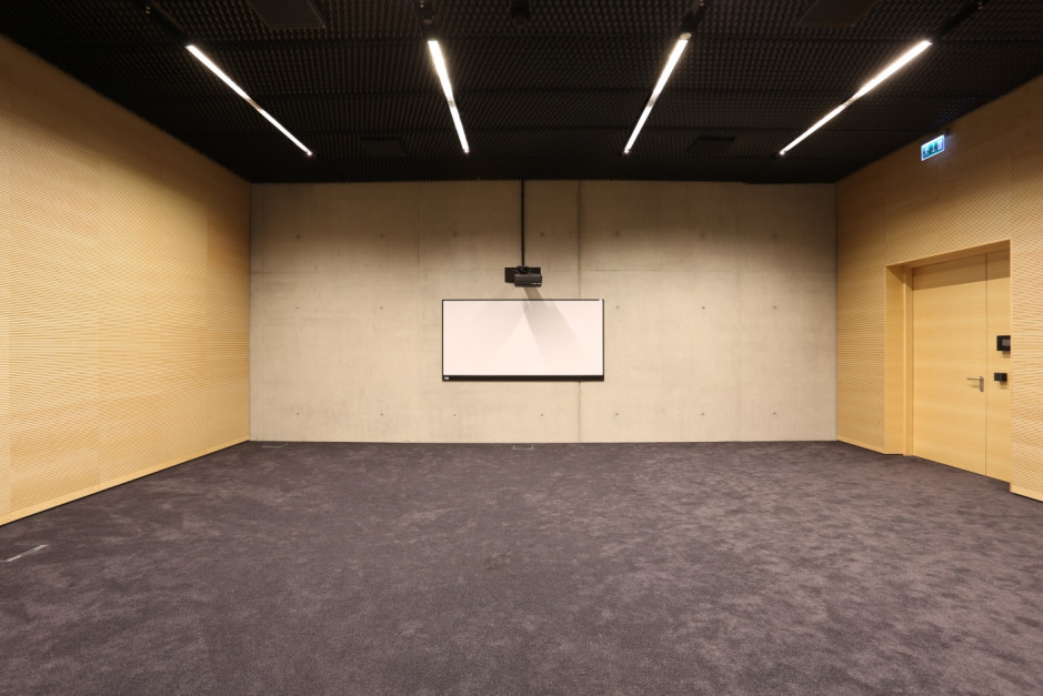 Conference Room 1 can be connected to Conference Room 2 with a sliding wall. This expands the area of the room to 132 m², which enables many other arrangement options.