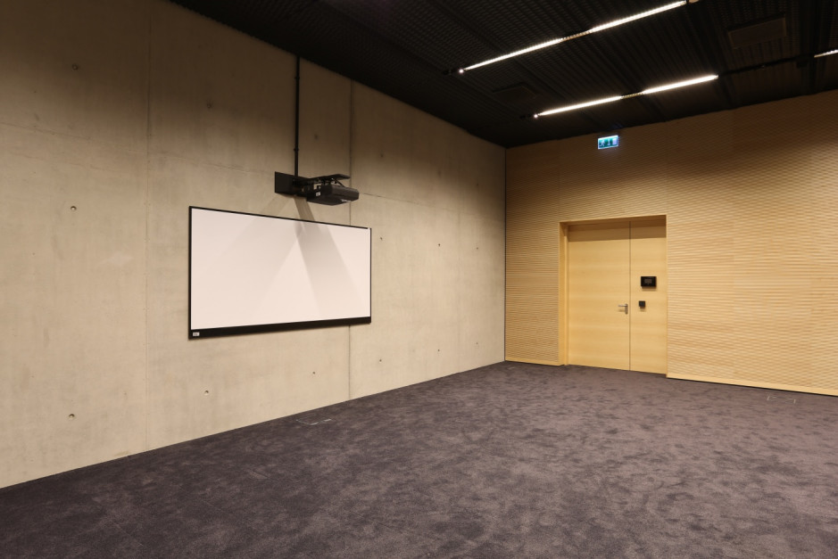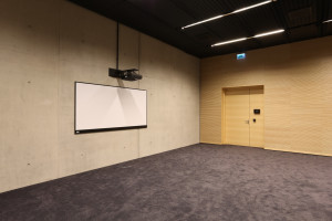 The rectangular room, 9.5 x 8.4 m with a surface area of 80 m², can accommodate various types of events. It is furnished with chairs and conference tables and the arrangement can be adapted to any event.