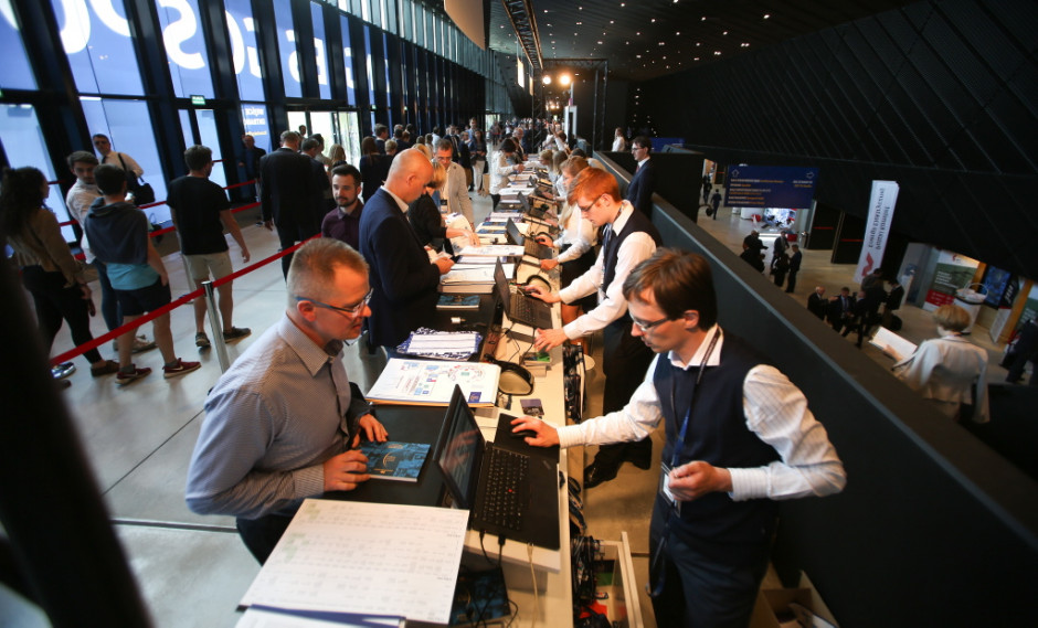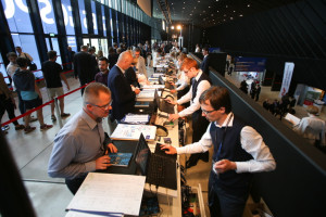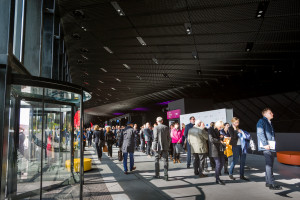 The Mezzanine in the International Congress Centre is fitted with reception desks and mobile information stalls.