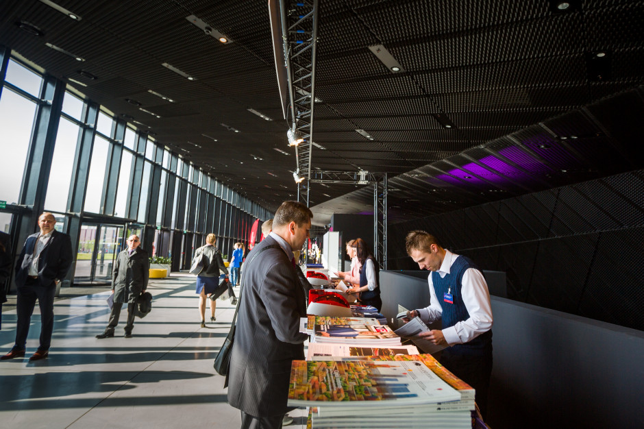 The Mezzanine in the International Congress Centre is located right at the entrance from the Olimpijska Street. It might be used as a reception or registration desk for guests during events held in the Multifunctional Conference Room as well as on the level of conference rooms.