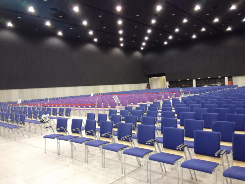 Equipped with modern furnishings, the hall was built for large trade shows, fairs, exhibitions, and music and sporting events. It is perfect for congresses, lectures, or speeches.